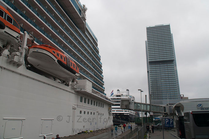 Nadat afgelopen donderdag het cruiseseizoen geopend was door de AIDA Stella was het zaterdag gelijk raak met twee cruiseschepen die Rotterdam aandeden. Een daarvan is een bekende in de stad de MS Rotterdam. Deze was ook al op 7 januari dit jaar in Rotterdam. Toen was het aanzienlijk beter weer als nu.
